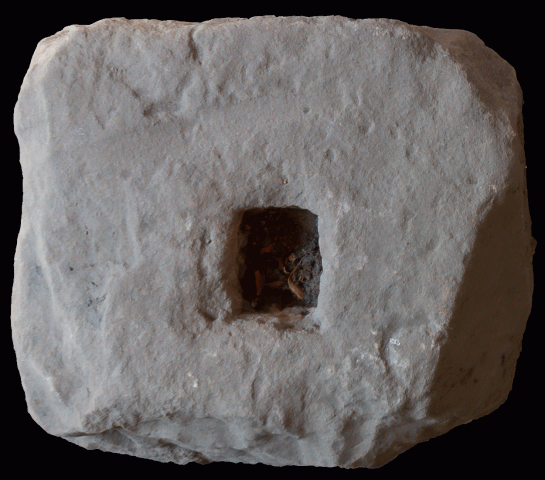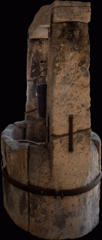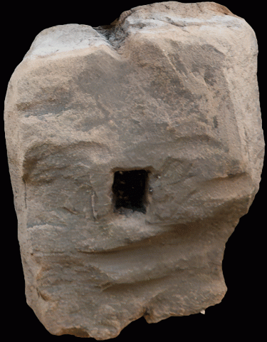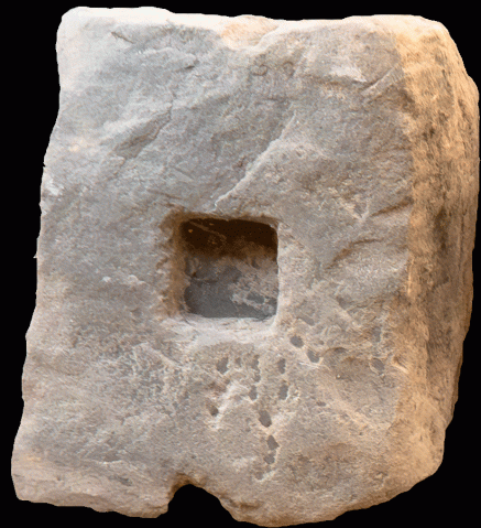 aus römischer Zeit, gefunden im Neubaugebiet ca. 1970. Auf den Pfostensteinen wurden Holzbalken aufgestellt, für Fachwerkbauten oder einfache Holzhäuser und Nutzbauten. Die Pfostensteine verhindern Staunässe und die zu schnelle Verottung des Holzes.